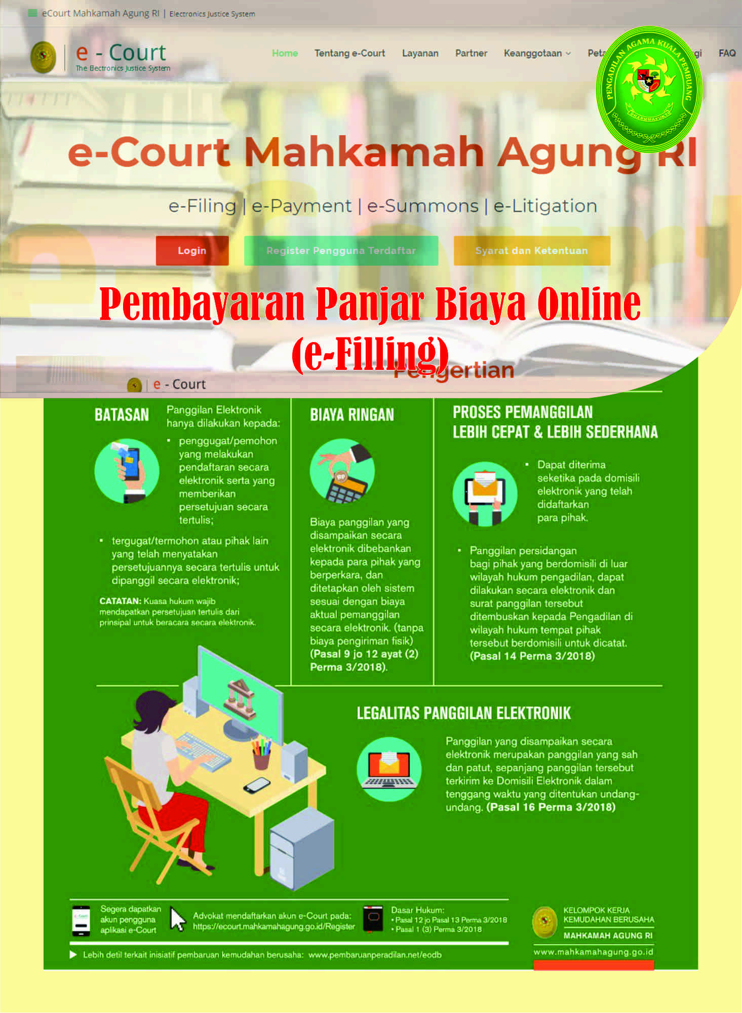 - e-Filing (Pendaftaran Perkara Online di Pengadilan)